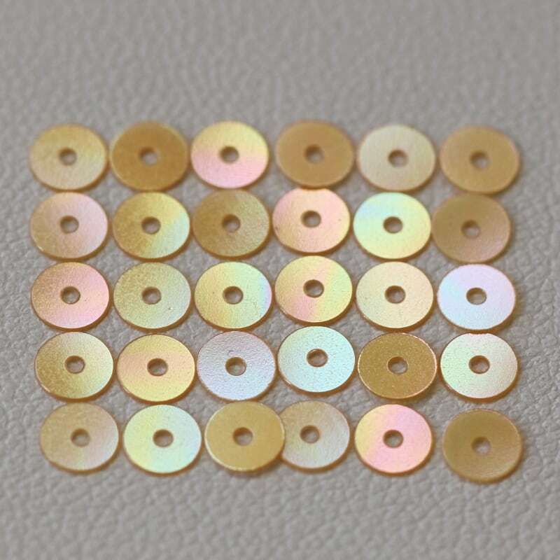 ● Paillettes et Cuvettes 4mm, Aspect perle satiné avec effet arc en ciel Coloris Orange clair N° 4660.