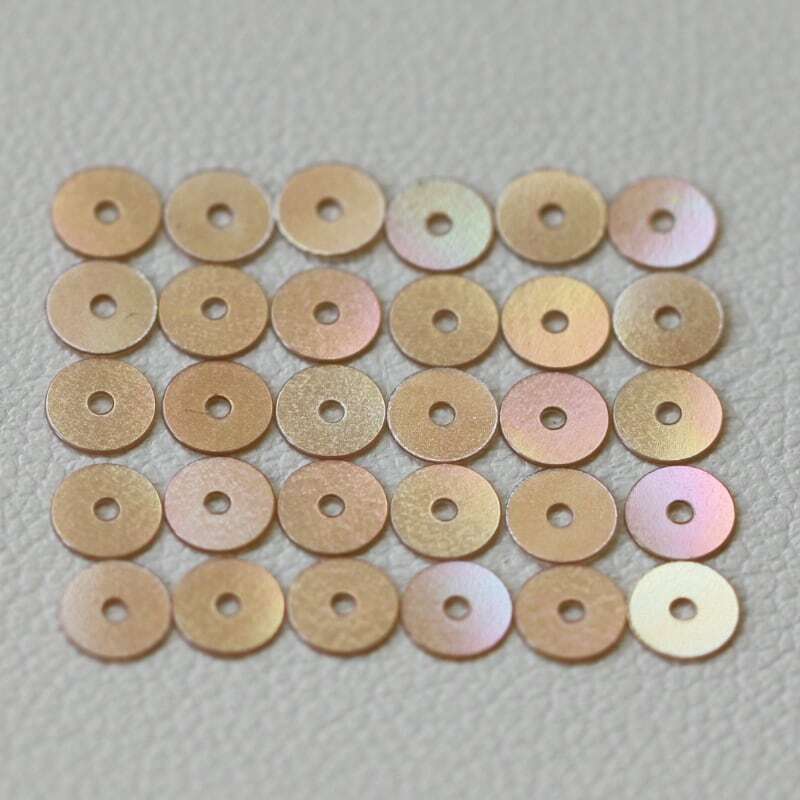 ● Paillettes et Cuvettes 4mm, Aspect perle satiné avec effet arc en ciel Coloris Marron clair N° 4664.